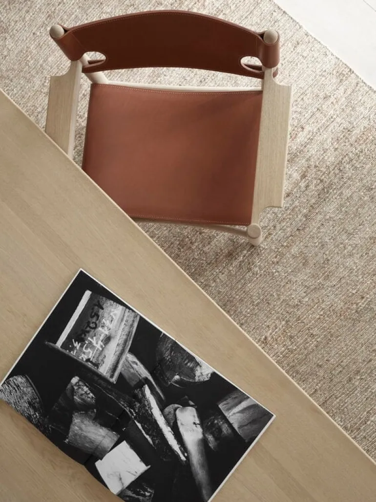 The Spanish Dining Chair by Fredericia was designed by Danish Børge Mogensen as a dining chair version of his classic The Spanish Chair from 1958. When designing the chairs, Mogensen was inspired by a medieval Spanish furniture technique in which saddle leather was attached to a solid wooden frame. This was a technique he often used in his designs, and also the The Spanish Dining Chair consists of a simple oak frame and beautiful saddle leather forming the seat and backrest. Despite of the simplicity of the design, The Spanish Dining Chair catches the eye with its bold hunting lodge esthetics. The chair is available with or without armrests.