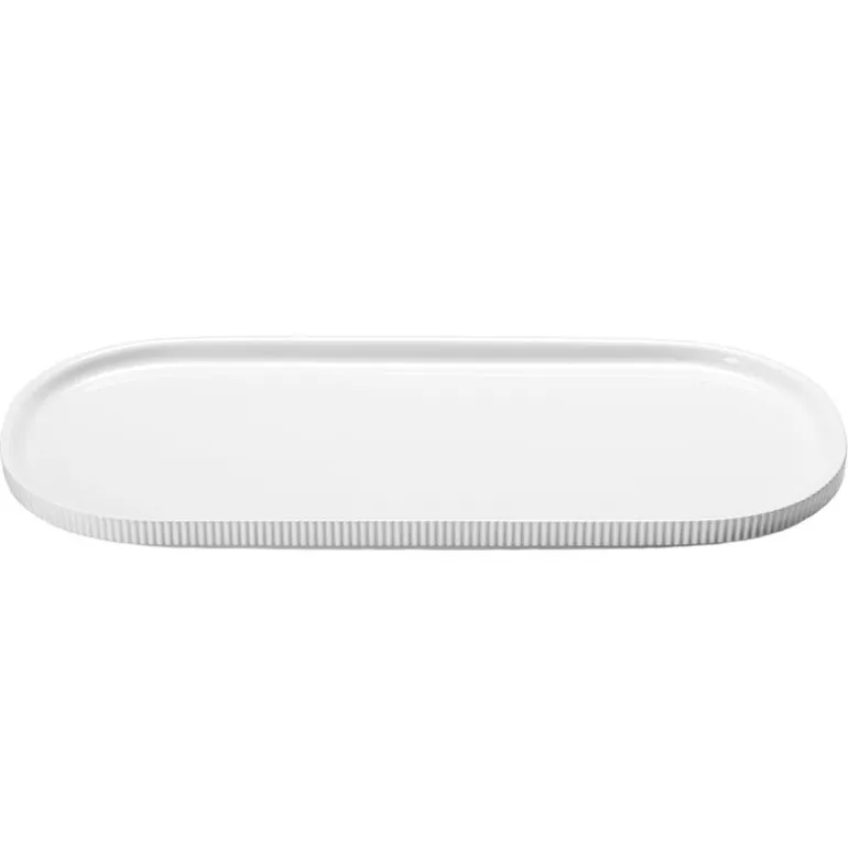 Georg Jensen’s Bernadotte serving platter is made of pure white porcelain and decorated with delicate grooves that characterize the entire Bernadotte series. The serving plate is ideal for a variety of delicacies from fish or salads to cheese and desserts.