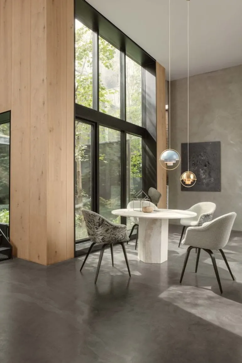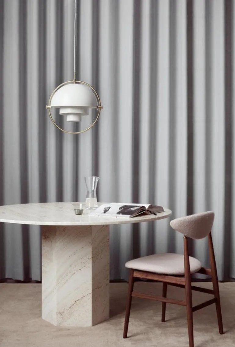The Epic dining table, designed by GamFratesi for GUBI, is a refreshingly contemporary take on classic architectural elements. The sculptural, seemingly simple look of the Epic dining table comprises two geometric elements: a hexagon and a circle. The table’s modern, minimalist tone carries a subtle reference to the iconic columns of Ancient Greece. The monolithic Epic dining table is the rightful focal point of a dining room, terrace, or public space, inviting calmness and stability.