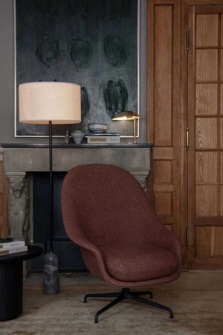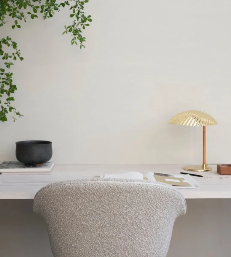 GUBI’s Tynell’s 5321 table lamp is also known as the Shell Lamp due to its brass shade resembling a seashell. Designer Paavo Tynell found his inspiration for the 5321 lamp from the nature and Romantic era, and the luminaire’s simplified appearance also echoes influences from mid-century modernism. Located right under the shell-shaped shade, the light bulb is reminiscent of a bright, glowing pearl. The organic appearance of the brass surfaces is complemented by a rattan-covered stem.