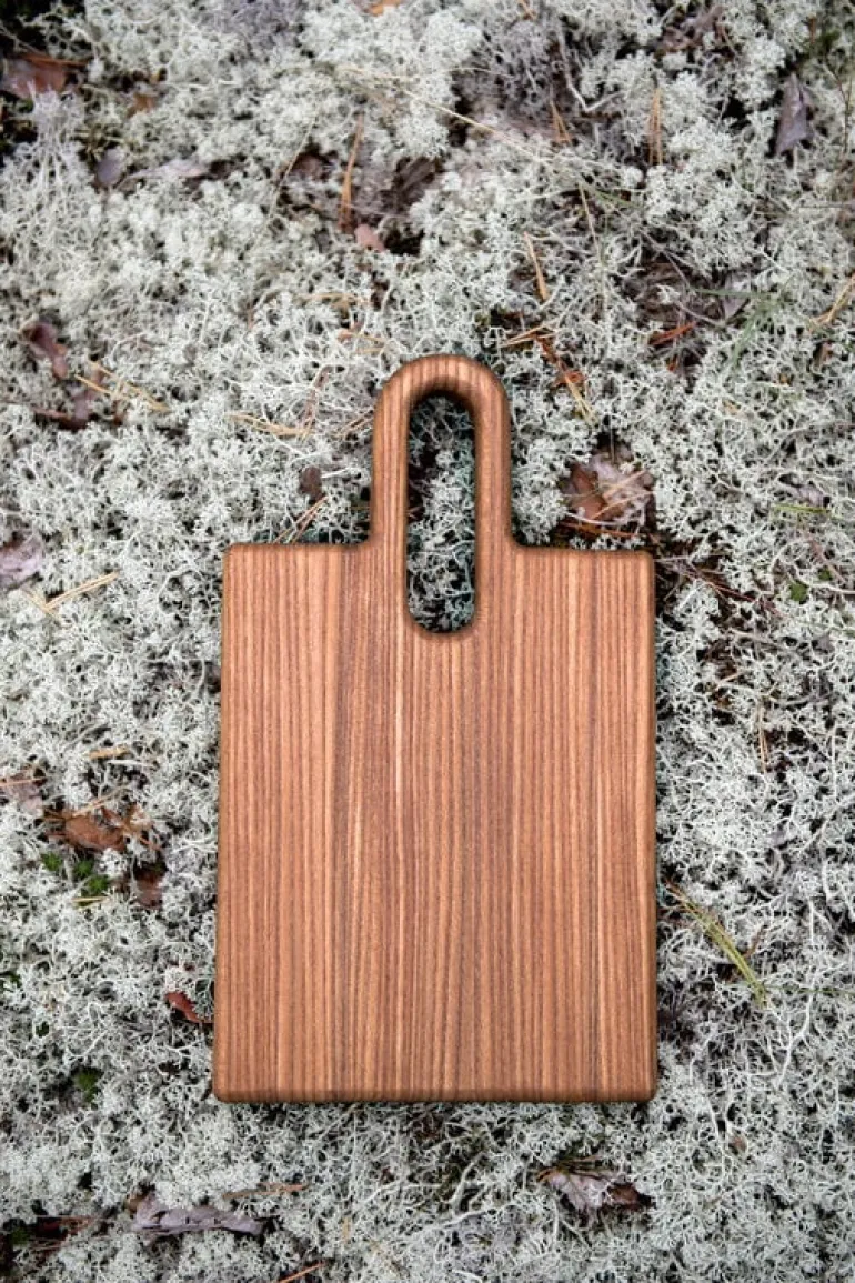 Halikko is a cutting board designed and manufactured by Hanna Saari. Made of high-quality solid wood, the cutting board reveals unique grain patterns and works like a jewel in the kitchen. The cutting board has a rounded design, functional handle and a hole for hanging. Halikko serves perfectly as a serving platter in table settings and is a long-lasting gift idea.