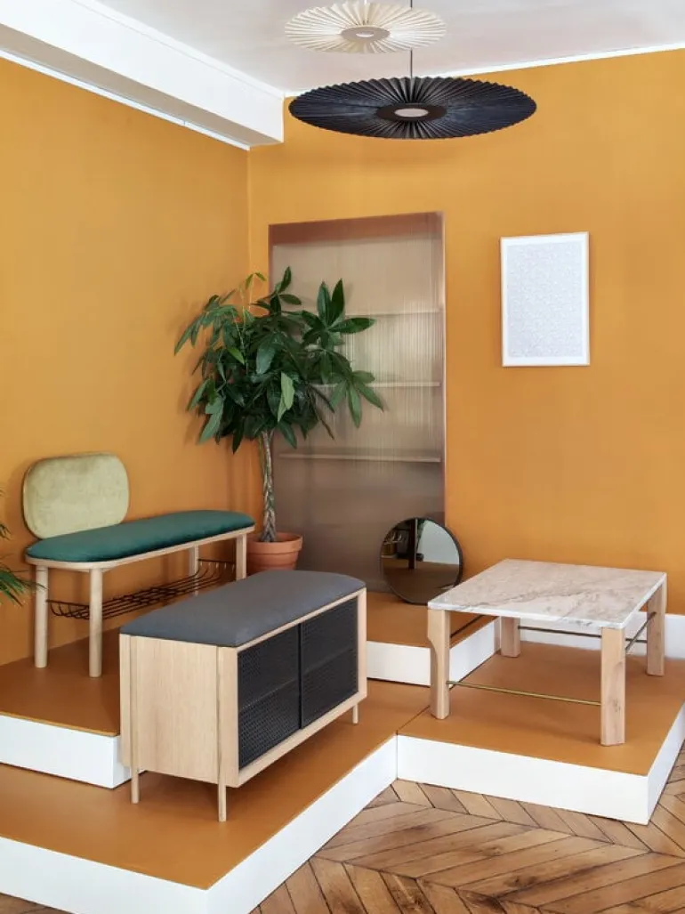 Gabin is a modern interpretation of vintage vitrines of the 1960s and its perforated pattern was inspired by wicker traditions. Gabin has been manufactured in Europe.