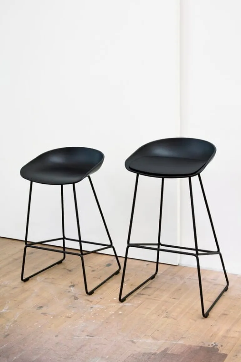 The About A Stool AAS38 barstool is part of HAY’s About A collection, created in close collaboration with designer Hee Welling, featuring chairs with outstanding simplicity and combinability. The bar stool combines a sleek metal frame with a streamlined polypropylene seat. In the 2.0 version, the seat is made of recycled plastic; in 2023, HAY updated the entire About A Collection with shells made from 100 % post-consumer plastic.