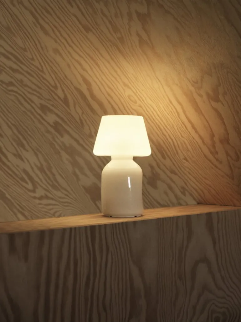 HAY’s Apollo Portable table lamp is a delightful combination of traditional and modern elements. Created by Danish design agency Studio 0405 and designer Nikolaj Lorentz Mentze, the Apollo luminaire was originally designed as an oil lamp for the Apollo Bar & Kantine restaurant in Copenhagen, after which it is also named. The hand-made table lamp is made entirely of opal glass, filtering the light into a soft and inviting glow. Apollo Portable creates a comforting illumination without glare and is suitable for a wide variety of spaces, from private homes to offices and cafés – and you can also take the cordless table lamp with you to the garden or terrace, or a midnight picnic!