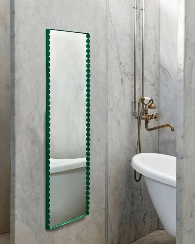 The Arcs wall mirror is adorned with subtle green frames with a design that may already be familiar to you from the candlesticks, vases and lamps in HAY’s Arcs collection. Designed by Muller Van Severen, the Arcs series is based on simple oval shapes: when joined together, the pieces create captivating silhouettes where soft and straight lines meet. The objects in the collection are available in both painted and mirrored finishes, so you can create a vibrant but coherent whole by mixing different shades and finishes together.