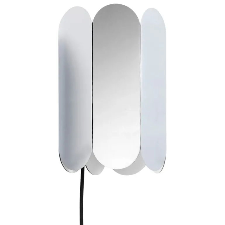 HAY’s Arcs Wall Switch is an atmospheric eye-catcher that creates a soft play of light and shadows to the room. The eye-catching and graphic wall-mounted luminaire is made of bent sheet metal steel and finished with a shiny mirror surface.