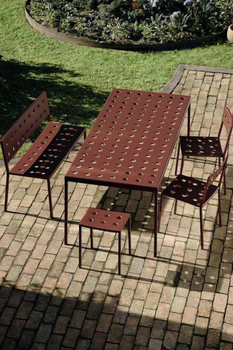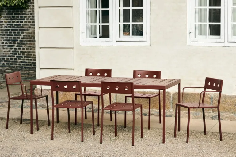 HAY’s Balcony table is part of a clever collection of outdoor furniture designed by the Bouroullec brothers. Made of thin steel sheet, the elegant Balcony outdoor dining tables are incomparably light and easy to move – a perfect addition to the garden or a patio. Featuring a weather-resistant coating the Balcony collection is as carefree as it looks.