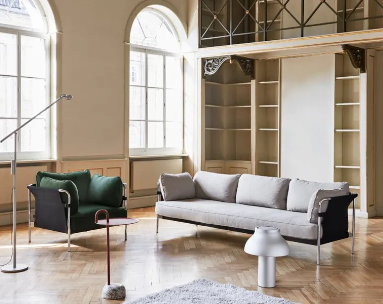 HAY’s Can collection was born when Ronan and Erwan Bouroullec set their mind to reinvigorate the concept of the sofa. They wanted to create a piece of furniture that is practical, elegant and comfortable but also relaxed and simple – a sofa for everyone. The Can sofas and armchairs come flat-packed and are assembled at home, which makes transportation and handling easier. The name Can reassures anyone having doubts about assembling the furniture. Just attach the slender metal legs to the frame, set the canvas in its place and finish off by adding the inviting, plush cushions.
