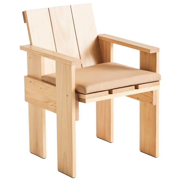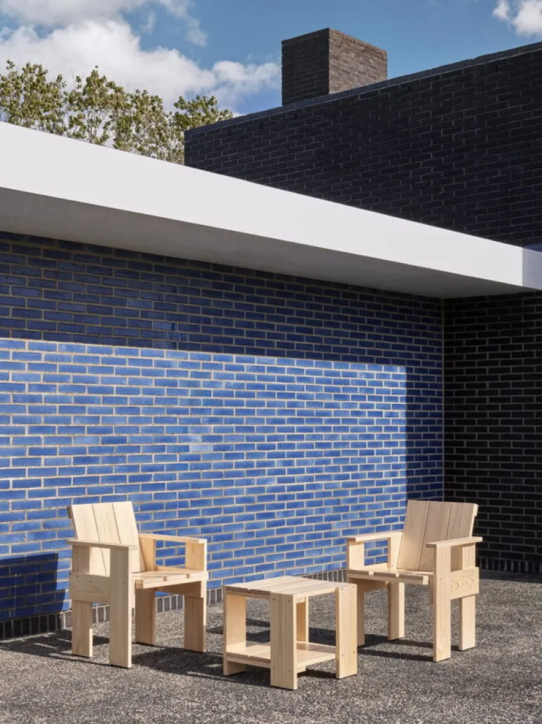 The Crate terrace chair is based on the original chair designed by Dutch architect and designer Gerrit Thomas Rietveld in 1934. At that time, the chair was made from leftover wooden shipping crates, but the Rietveld Originals and HAY reinterpretation uses lacquered pine as the material. Finished with a weatherproof coating, the Crate dining chair is ideal for outdoor spaces from the terrace to the garden and balcony.