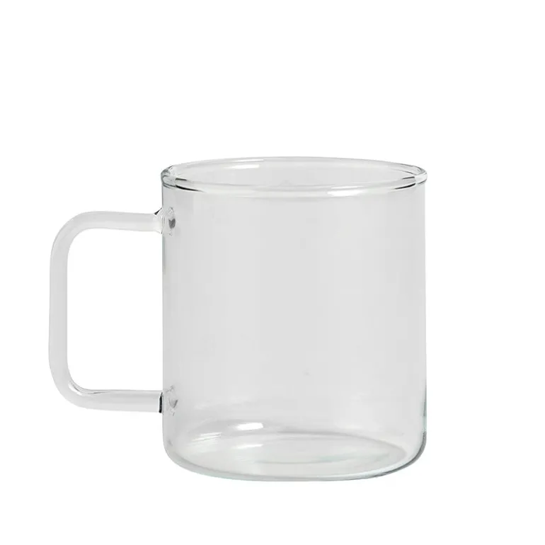 The beautiful glass coffee mug from HAY’s Kitchen Market collection is made of strong borosilicate glass, which can stand both hot and cold temperatures. The glass cup is dishwasher-safe.