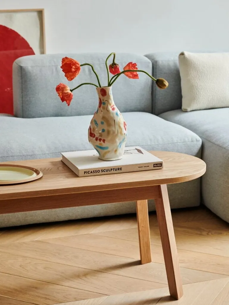 HAY’s Miró vase was designed by artist Jessica Hans. Hans draws inspiration for her work from nature, more specifically the organic patterns on plants and stone. The hand-painted motif highlights the tactile surface of the stoneware vase, giving it a unique expression. The modern, sleek design creates a stunning combo together with a vibrant arrangement of flowers, but the Miró vase also makes a strong stand-alone piece.