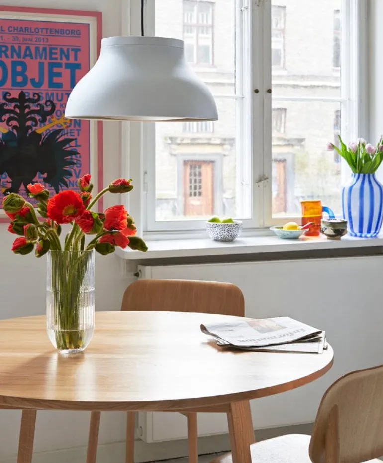 Juice vase, designed by Kristine Five Melvær for HAY, creates a joyful atmosphere anywhere you place it. The vase is adorned with asymmetrical stripes that have been created using the traditional filigree technique. The simple shape of the vase is reminiscent of a flower bulb. Juice is the perfect vase for lush, colorful bouquets, but sparks joy also on its own.