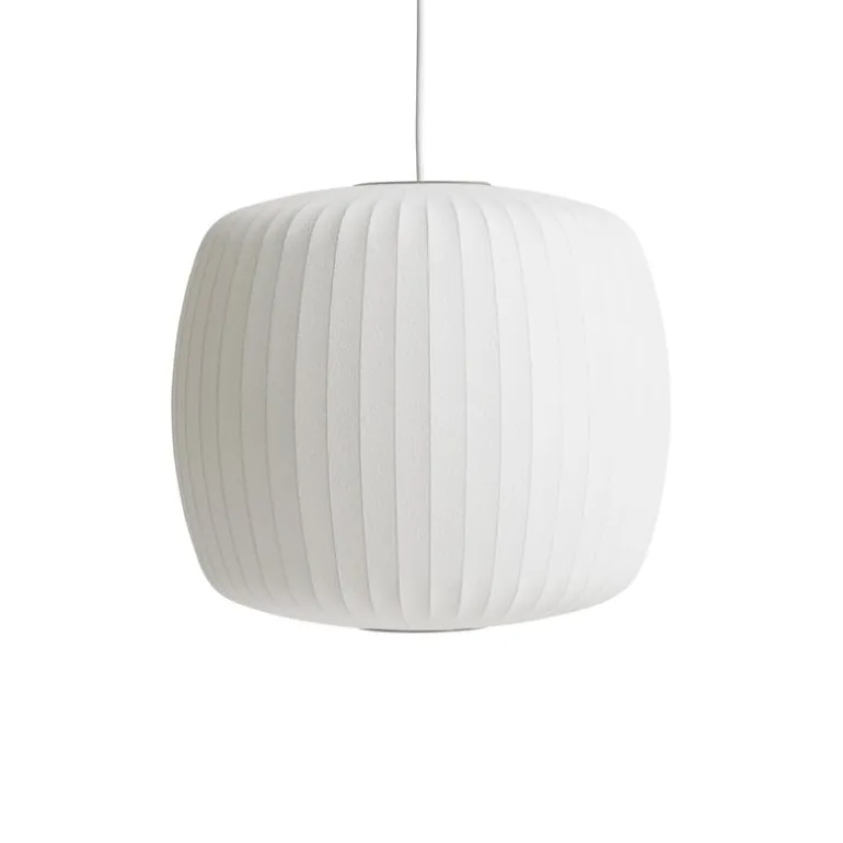 The Nelson Roll Bubble is part of a lighting series designed by George Nelson and produced by Herman Miller in the 1950s. Nelson wanted to purchase a similar Swedish lamp made of silk, but instead, opted for designing his own version of the pendant to save time and money. The lamps in the collection are still manufactured at the same factory that originally started manufacturing them in 1952.