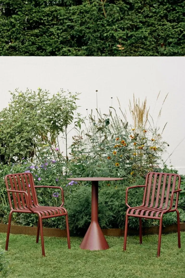 The sleek yet robust Palissade armchair is a member of HAY’s versatile outdoor furniture collection. Palissade outdoor furniture features a strong, graphic design that consists of simple steel tubes and slats. Ronan and Erwan Bouroullec worked with the collection for two years and created a range of simple, balanced pieces that are well suited for terraces, balconies, gardens, cafés and public spaces. The Palissade chairs, tables and benches are sturdy but elegant, and perfect for outdoor use since wind and water will pass through the galvanized steel frame. The Palissade furniture was designed to age well and its muted color palette adds to the timeless and versatile appearance.