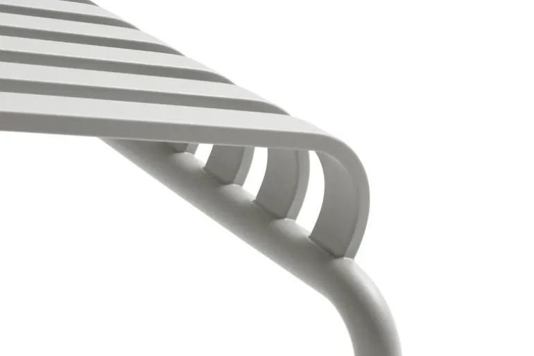 Palissade outdoor furniture features a strong, graphic design that consists of simple steel tubes and slats. Ronan and Erwan Bouroullec worked with the collection for two years and created a range of simple, balanced pieces that are well suited for terraces, balconies, gardens, cafés and public spaces. The Palissade chairs, tables and benches are sturdy but elegant, and perfect for outdoor use since wind and water will pass through the galvanized steel frame. The Palissade furniture was designed to age well and its muted color palette adds to the timeless and versatile appearance.