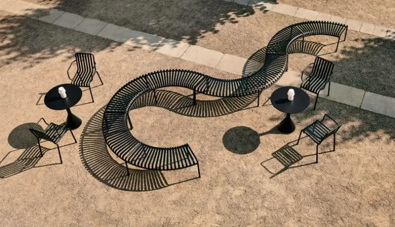 The Palissade Park bench is part of HAY’s Palissade Park collection, consisting of modular benches designed especially for larger outdoor spaces and contract use. By connecting two or more benches together, you can create customized seating arrangements in arched, wavy and round configurations.