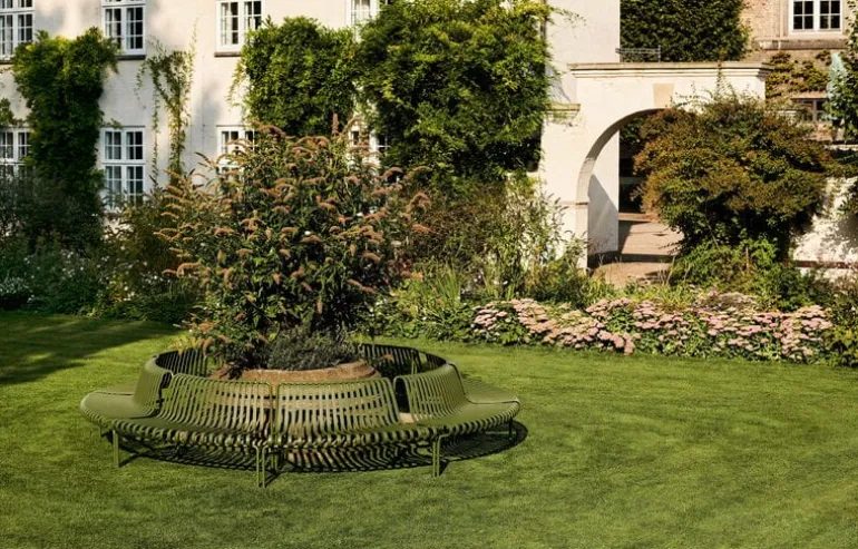 The Palissade Park dining bench add-on is part of HAY’s Palissade Park collection, consisting of modular benches designed especially for larger outdoor spaces and contract use. By connecting two or more benches together, you can create customized seating arrangements in arched, wavy and round configurations. The basic modules of the benches are curved either inward (in) or outward (out).