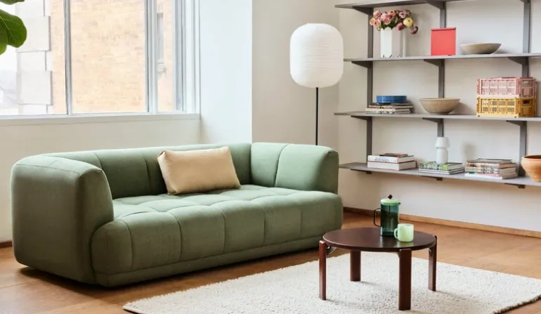 HAY’s Peas Random rug is made of small, hand-rolled wool felt spheres that give the rug an organic look and lively texture. The Peas Random rugs are made in India and come in several sizes and colors. Choose the largest size for the living room or for the dining area, or opt for the narrow rug for a stunning hallway runner – or combine several rugs of different colors and sizes to create a charming rug composition!