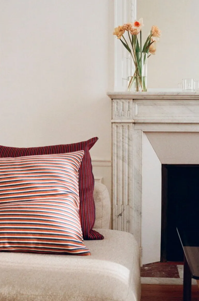 HAY’s Ribbon cushion charms with its cheerful colors. Seen from a distance, the playful cushion looks monochrome, but a closer look reveals a surprising detail: the red color of the cushion is actually made up of several thin stripes of different colors. The soft, feather-filled decorative cushion is suitable for many interiors and will look lovely on a sofa or armchair in the living room or on a bed in the bedroom as well.