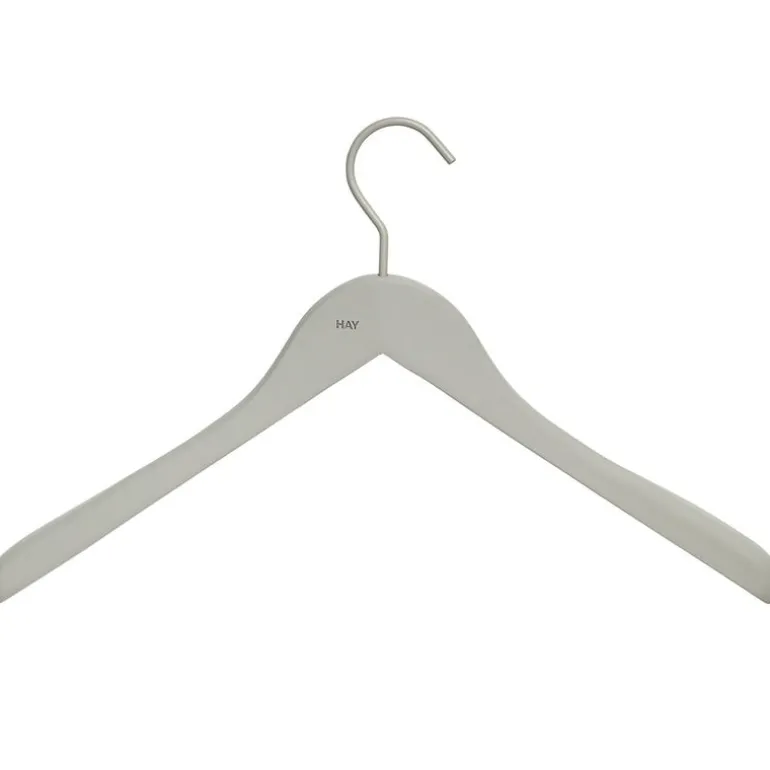Soft is a wooden coat hanger by HAY. The rubber coating of the hanger prevents clothes from falling and keeps them in place. Perfect for jackets! The box contains four hangers.