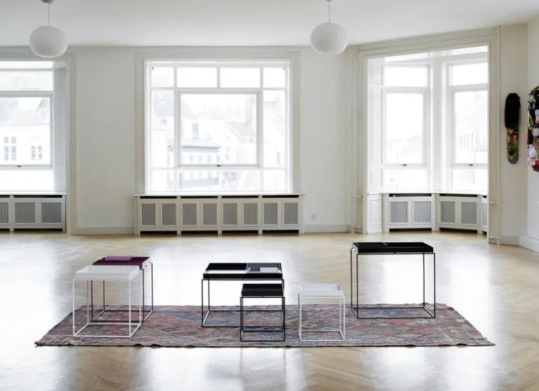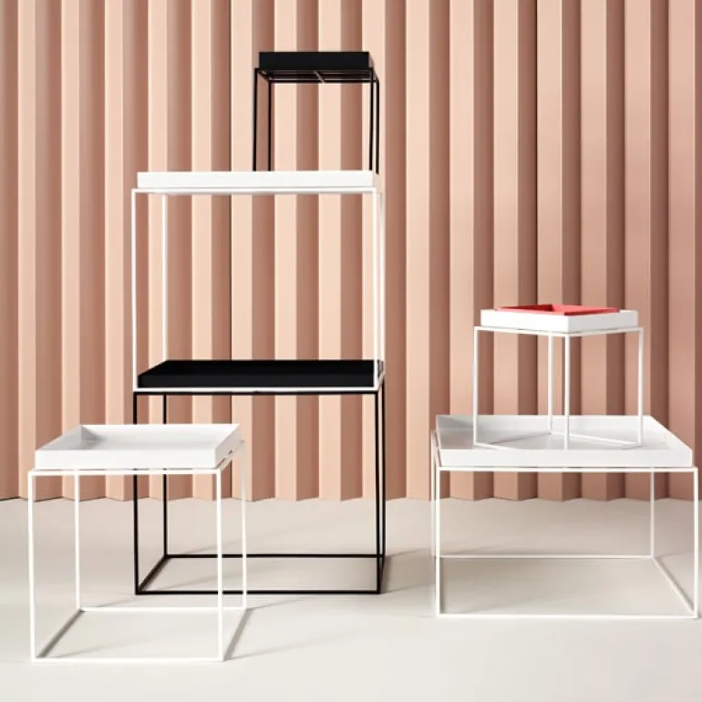 HAY’s Tray tables will bring a new look to any living room. Large, traditional sofa tables can be replaced by attractive groups of smaller Tray tables. Tray is composed of a simple powder-coated steel frame and a removable tray. The tables can be used as sofa or side tables in the living room, nightstands in the bedroom – anywhere extra table space is needed. Combine Tray table with smaller functional HAY trays to create a monochrome look or to add a touch of color.