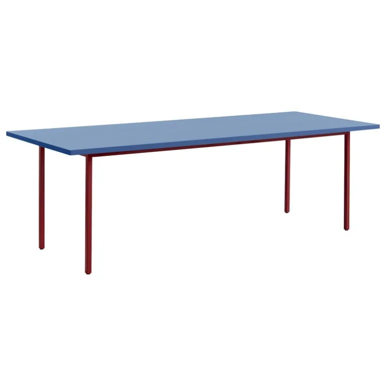 The Two-Color table by HAY is a jovial mix of bursting colors and strict minimalism. Created by Belgian design duo Muller Van Severen, the Two-Color tables feature a unique marriage between two very different components: a sturdy, yet airy steel base and a tabletop crafted from a new SFC certified MDF material, Valchromat. The unique, textured look of the Valchromat is slightly visible through the sheer lacquer, giving the geometric table an organic touch.