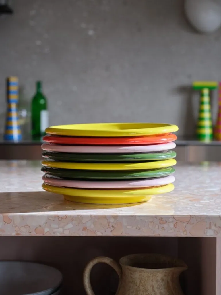 Hem’s Bronto plate is part of a tableware collection that is not shy about its existence. Designed by Supergroup, the plate has a recognizably bulky and chunky design – dinosaur-like, one might even say. So no wonder the ceramic dinnerware has actually got its name from the giant Brontosaurus! Exaggerated curves bring the glossy glazed plate to life and vibrant colors put a smile on your face at the breakfast table or when serving desserts. The package contains two plates.