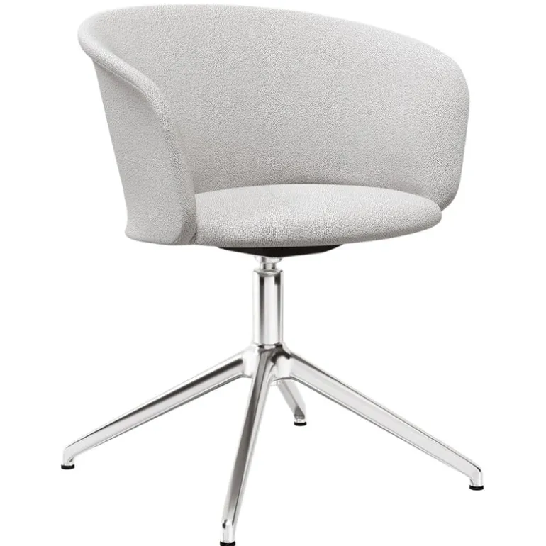 The Kendo chair by Hem features an upholstered, cup-shaped seat and a 360-degree rotating aluminum swivel base. Expressive and minimalist at the same time, the Kendo chair is well suited as an office chair as well as a dining chair. The return function of the swivel base keeps the chairs neatly aligned for example around the dining table.