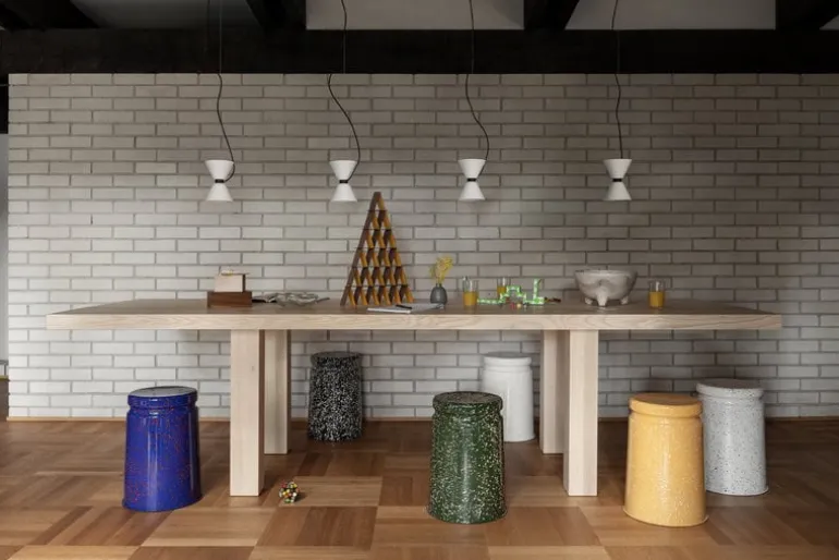Hem’s Last stool captivates with its distinctive expression. Crafted from enameled metal, the stool is extremely durable and stable, yet easy to lift and move around due to the handy indentation. The Last stool, designed by Max Lamb, is a versatile piece equally impressive at a dining table or as a nightstand or side table. Besides, it also works as a guaranteed conversation starter. The hand-splattered design makes every stool a unique piece of art.