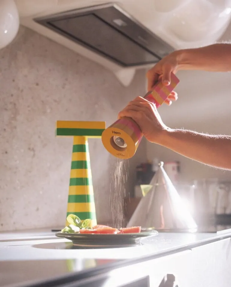 Hem’s Molino grinder blurs the line between the everyday object and sculptural decoration: the striped spice grinder happens to be both. Grinder’s playful design and bright colors were inspired by the energy and vitality of designer Fabien Cappello’s homeland, Mexico. The Molino spice grinder is made from solid beech and painted by hand which gives each piece a unique look and character. A glossy lacquer finish completes the sophisticated yet relaxed cheerful look. The Molino spice grinder brings life and joy to any table setting – this spice grinder is so much fun to use that food might be in danger of becoming too spicy!
