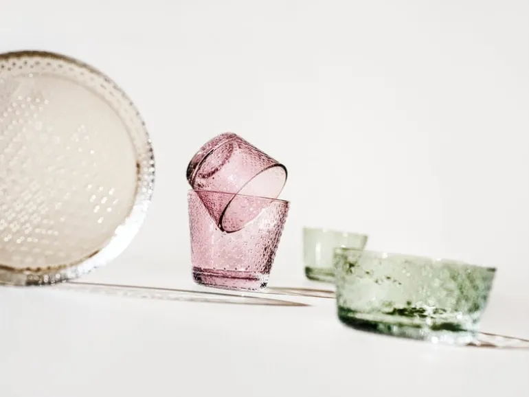 The Tundra collection is adorned with delicate embossing on the surface, which gives the glassware a pleasant, tactile feel. As the name of the series suggests, Toikka designed the Tundra collection inspired by arctic landscapes and wilderness. The collection is produced in Finland at the Iittala Glass Factory.