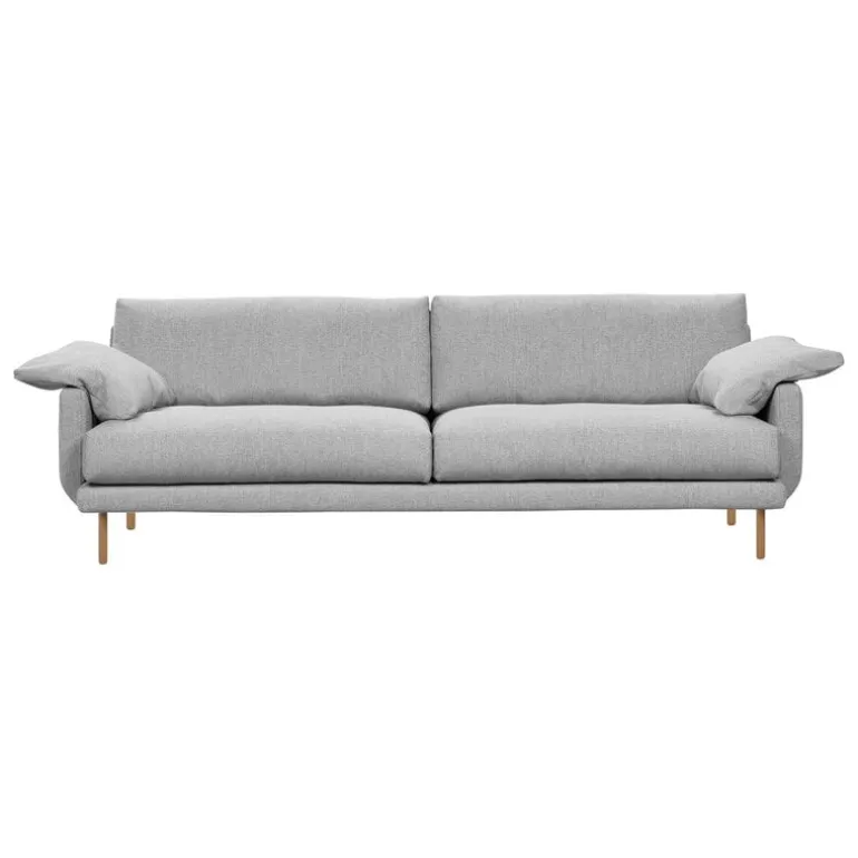 Interface’s Bebé sofa invites instant relaxation. Designed by Aino Michelsen, the soft lines, slender features and deep seats of the Bebé sofa provide a pleasant setting for both relaxed sitting and socializing. Thin legs support the frame and the soft, cloud-like seat cushions filled with feathers, giving the Bebé sofa a light and airy look. The relaxed decorative pillows balanced on the armrests complete the sympathetic mood. The Bebé sofa, made in Finland, is a timelessly beautiful addition to both private living rooms and public spaces alike.