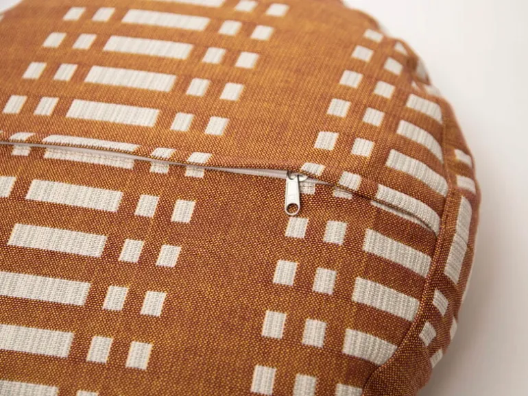 Johanna Gullichsen’s round Beetle cushion adds a cheerful touch of modernized weaving traditions to the decor. Finished with Gullichsen’s beloved patterns, the beautiful Beetle cushion draws inspiration from Egyptian beetle-shaped Skarabee amulets. The removable cushion cover – equipped with a zipper – is made of organic cotton and is designed and woven in Finland.