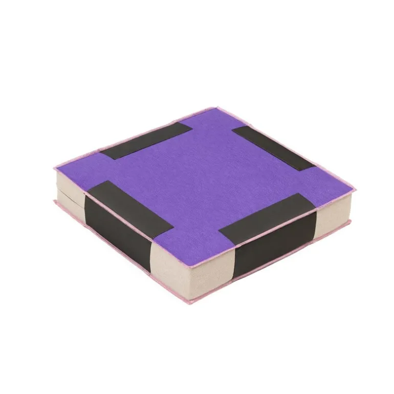 The floor pouf’s playful esthetic is created by different colored graphic pieces, held together by strong seams that are left charmingly visible. The Smokey Quartz cushion is made from textile industry surplus materials and filled with recycled polyurethane foam, which gives the cushion a soft but sturdy look.