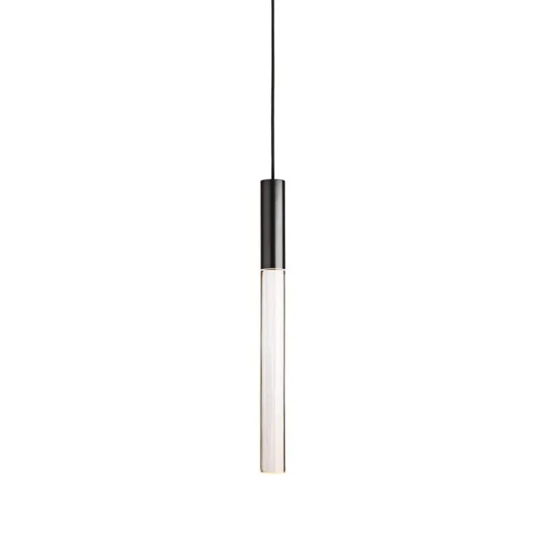 Made of clear acrylic plastic, the tubular Plexi pendant shines light along its entire length and casts a soft, inviting glow from its sandblasted lower end, too. The luminaire charms the viewer with its delicate appearance, which is even more striking if you place several Plexis in a shiny cluster in a living room or dining room. The Plexi pendant light is a great addition to public spaces as well, from hotels to restaurants and offices.