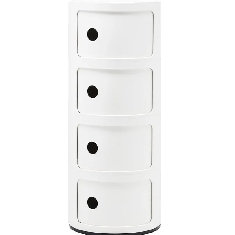 Designed in 1969, the Componibili storage unit by Kartell is a design classic that keeps on charming new friends. The storage unit is suitable for various uses and fits all kinds of decors. Place Componibili in the bedroom, living room or kitchen – thanks to its durable plastic surface, it is also ideal for the bathroom or balcony. The Componibili was designed by Anna Castelli Ferrieri and is a part of the permanent collections of the MoMA in New York and the Pompidou Center in Paris.
