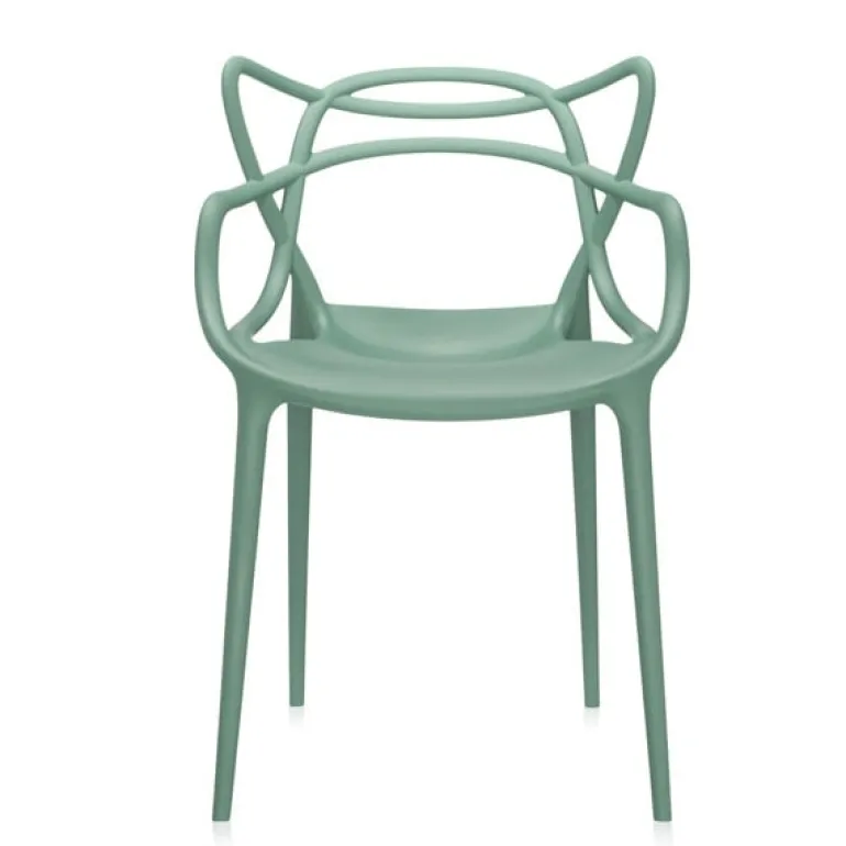 The Masters chair by Philippe Starck and Eugeni Quitllet is a tribute to three iconic chairs: the Series 7 by Arne Jacobsen, the Tulip armchair by Eero Saarinen and the DSR chair (or Eiffel chair) by Charles and Ray Eames. The silhouette of each classic can be found from the back rest of the Masters chair. The slim legs give the chair a slender figure. The Masters chair is light, stackable and suitable for outdoor use.