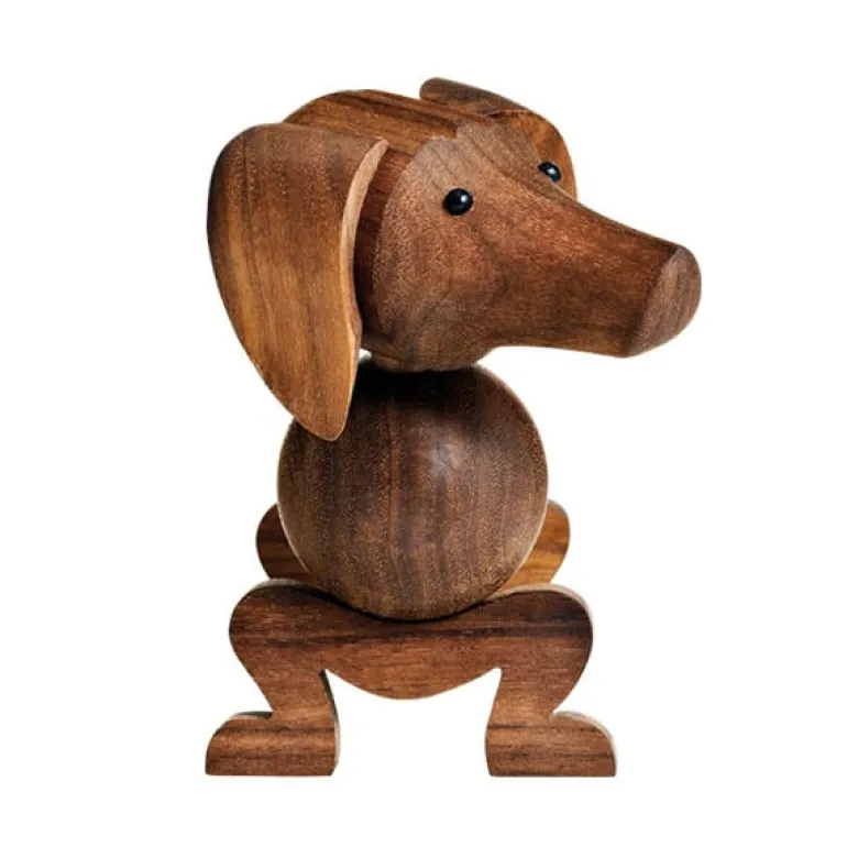 The wooden dog is one of the members of the animal family, designed by Kay Bojesen. The friendly-looking dachshund charms with its whimsical appearance and skilful, fine details. The wooden dog is made of walnut wood.