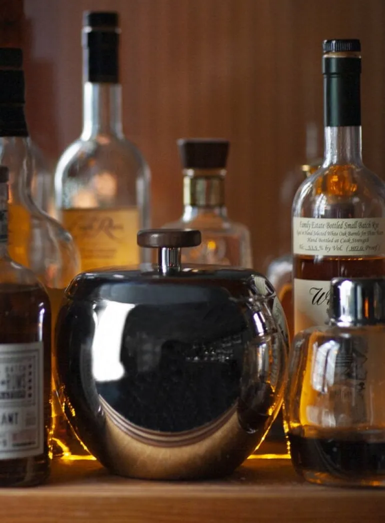 The ice bucket is part of the renowned Danish designer Kay Bojesen’s collection of bar accessories. Bojesen designed an array of bar and cocktail silverware between the 1920s and 1950s, and the original drawings have since been reimagined in stainless steel and glass. The collection’s timeless appearance and sophisticated lines add elegance to any table setting, delighting cocktail enthusiasts and design aficionados alike.