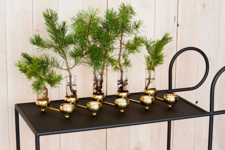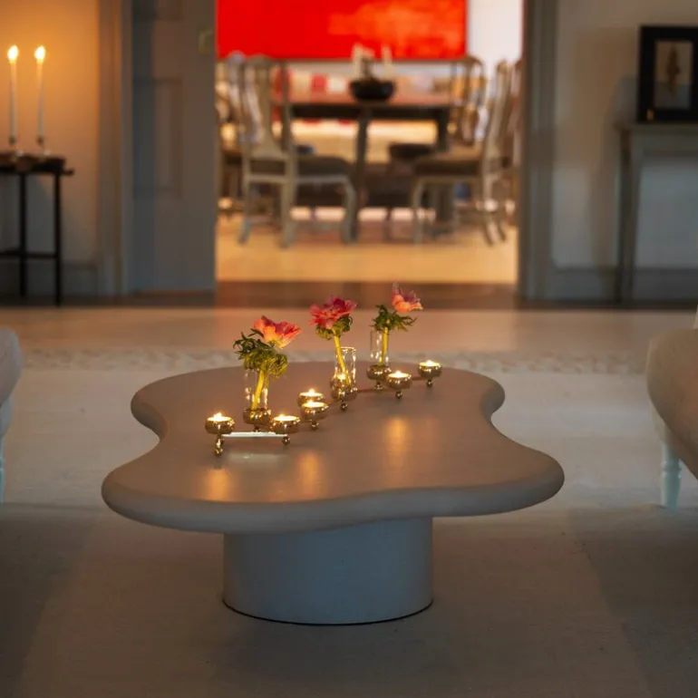 The Constella candlestick by Klong arranges tealights into an elegant, geometric constellation in a shape of your choice. Designed by Eva Schildt, the Constella candlesticks make bold eye-catchers also on large tables and celebrations – the candlestick for 5 tealights has a maximum length of 25.2 x 0 in (64 x cm, cm), and the 10-piece candlestick stretches out to 48.82 x 0 in (124 x cm. cm). In addition to candles, you can also place small decorations or flowers into the cups.
