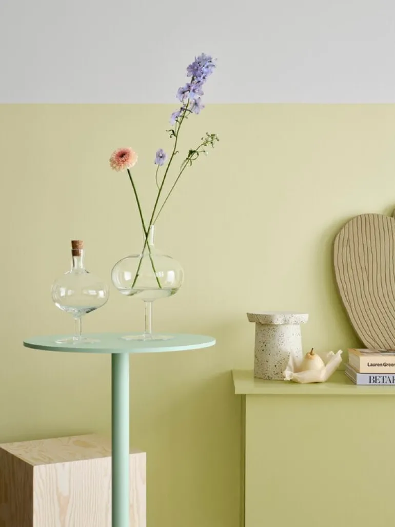 Kosta Boda’s Bod bottle charms with its soft form and asymmetrical shape. Mouth-blown from recycled crystal glass, the bottle’s design is not only esthetic and elegant, but also a salute to the many years of wine glass production at the Kosta Boda glassworks. The Bod glass bottle serves as a vase for tiny flowers and stems or simply as a decorative ornament on its own. The cork cap finishes the bottle’s stylish look. The Bod bottle was designed by designer brothers Matti and Simon Klenell.
