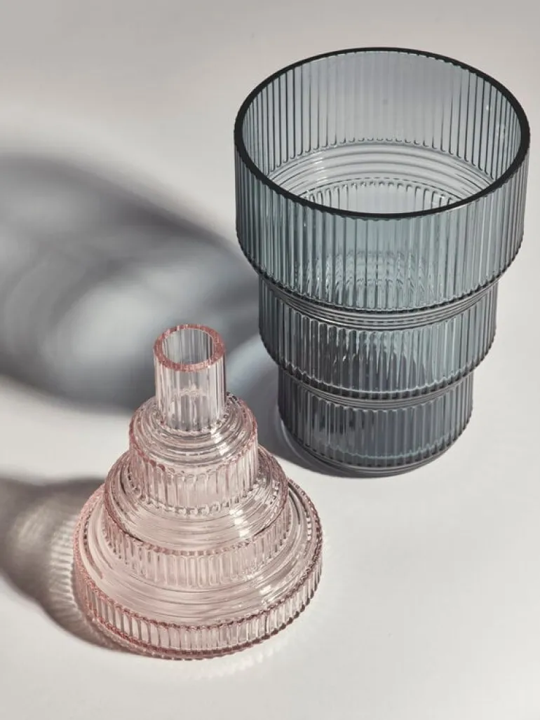 Kosta Boda’s Pavilion vase celebrates the geometric interplay of vertical and horizontal ridges that give the vase its distinctive look. Designed in collaboration with the Swedish design studio Front, the Pavilion collection invites people to play and create imaginative flower arrangements. Try mixing and matching bold colors – or leave the vase empty if you wish, as the beautifully layered shape of the Pavilion vase is a delight to look at on its own!