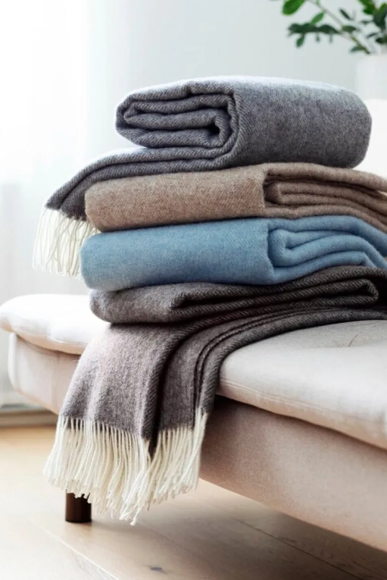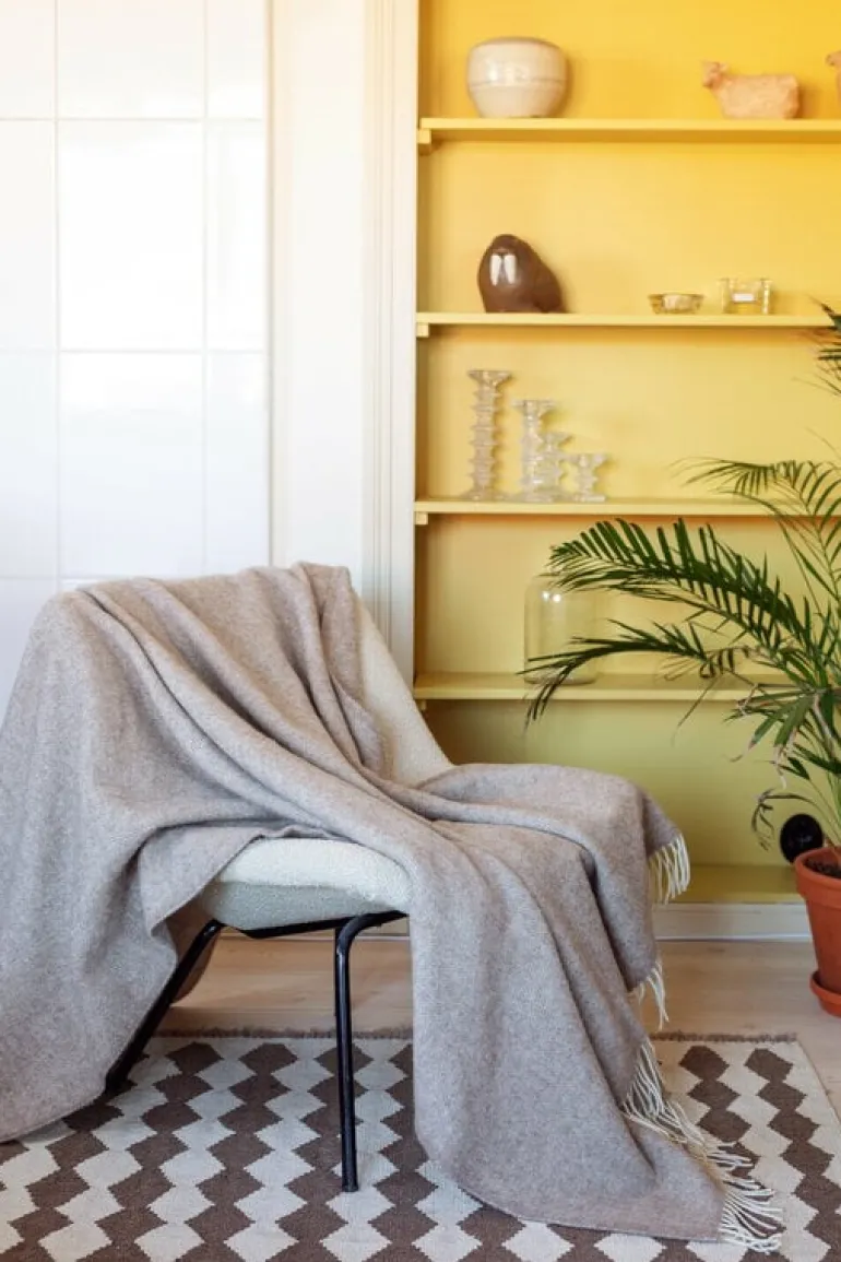 The Arvo wool blanket by Lapuan Kankurit wraps you in cozy warmth, whether you’re relaxing on the sofa or enjoying a nap on the bed. Made from 100% wool, the blanket is colored in calming natural hues, with fringed edges adding the perfect finishing touch.