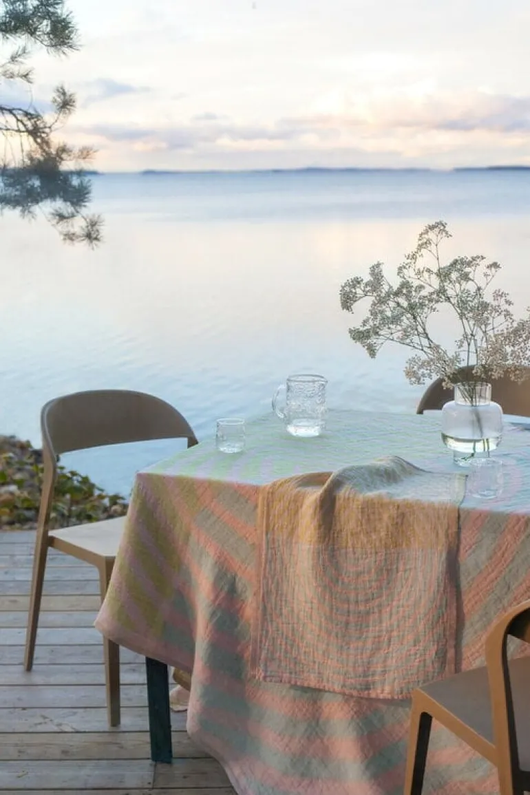 The Metsälampi table cloth by Lapuan Kankurit is decorated with a delicate Metsälampi pattern, designed by Akira Minagawa. The charming pattern takes you back to nature and the disappearing shapes in the water of the pond – the name “Metsälampi” means forest pond in English. The multifunctional linen cloth completes the look of table settings as a beautiful tablecloth but also works as a thin blanket in the summer heat, a curtain at the window or a picnic mat in the park.