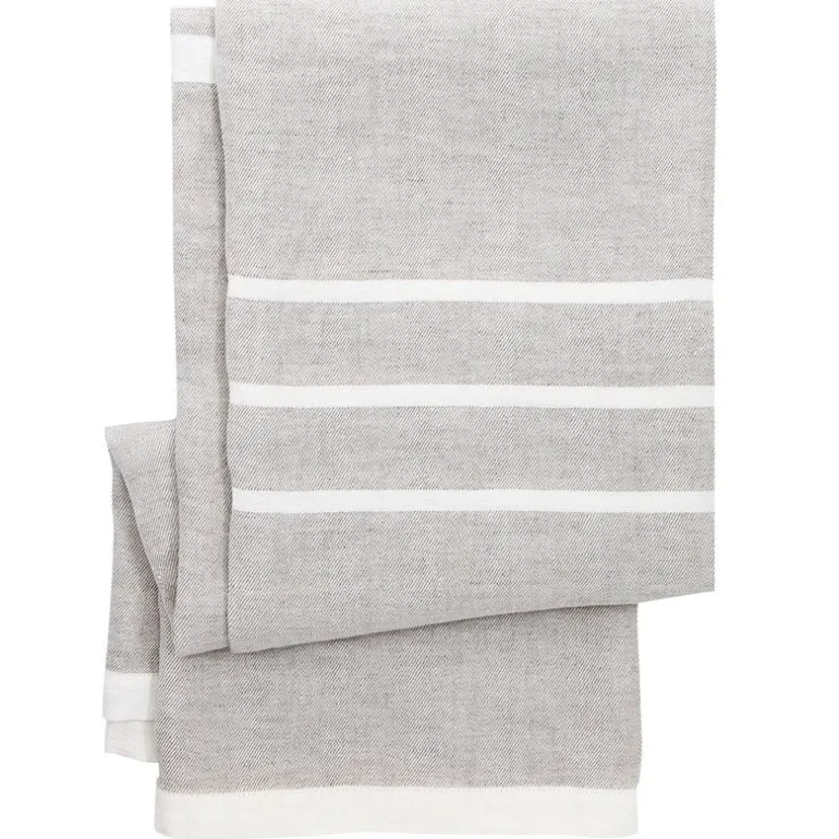 The linen cloth is decorated with a classic, minimalist stripe pattern designed by Anu Leinonen. Thanks to its large size, machine-washable material and unassuming pattern, the Usva tablecloth is very versatile: in addition to table settings, it also serves as a light blanket for daytime napping or sitting down on the beach, or even as beautifully neutral linen curtains. The striped linen cloth is woven at the Lapuan Kankurit weaving mill in Finland.