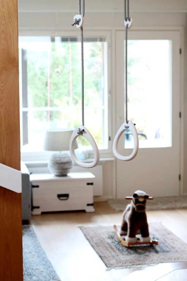 Lillagunga Rings combine sports and design in a fun and elegant manner! Designed for both adults and children, the gymnastic rings help to develop strength, balance and flexibility, and make an excellent addition for many kinds of spaces from children’s rooms to offices. The rings are made of carefully crafted wooden elements that have been glued together smoothly, offering a good grip for smaller and bigger hands. Designed and manufactured in Finland, the elegant Lillagunga products have been built to last.