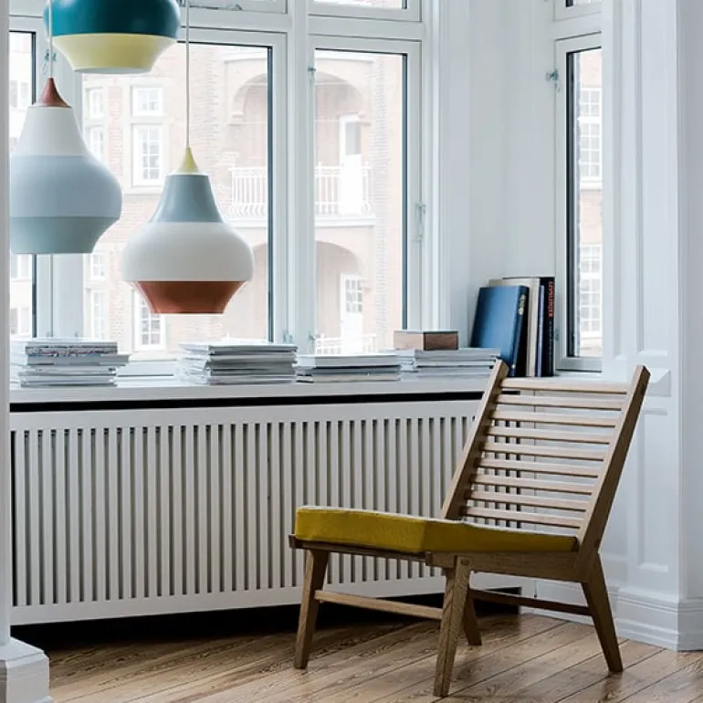 | Louis Poulsen’s Cirque is a collection of playful pendant lights, designed by Swedish Clara von Zweigbergk. Their fun, striped appearance was inspired by Tivoli Gardens in Copenhagen: the colors and patterns of carousels and other spinning objects merge into horizontal bands of color when in motion. The delightful design of the shade mirrors the onion-shaped domes, also seen in the amusement park. The Cirque pendant lights provide a pleasant downward light and look great above sofa and dining tables. |