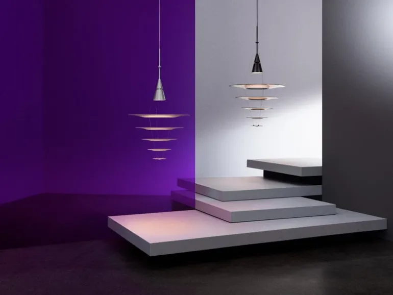 Louis Poulsen’s Enigma 545 pendant lamp, designed by Shoichi Uchiyama from Tokyo, has a distinctive, sculptural structure and a generous height of 38.19 x 0 in (97 x cm. cm). Enigma consists of thin acrylic shades that seem to be floating above each other. The result is an elegant play of light that creates an interesting, three-dimensional impression. A bold combination of Japanese and Scandinavian design, Enigma fits well with Louis Poulsen’s philosophy by combining direct and indirect light into pleasant general lighting.