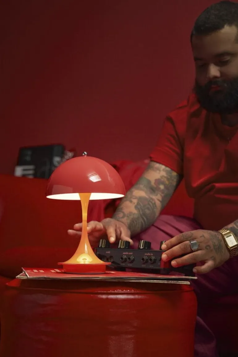 Louis Poulsen’s Panthella 160 Portable V3 table lamp is a cordless edition of one of Danish designer Verner Panton’s most beloved lighting designs, perfect for both indoor and outdoor use. This rechargeable lamp features a touch dimmer with three brightness settings, offering up to 8.5 hours of illumination at full brightness – ideal for lighting up balconies or gardens before bringing it inside for the night. Made entirely from recycled plastic, the battery-powered Panthella 160 Portable V3 can be charged with either an induction charger or the included USB-C cable.