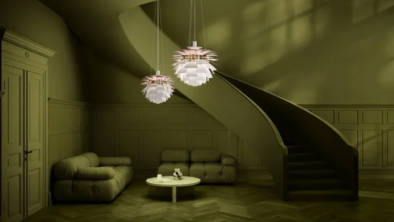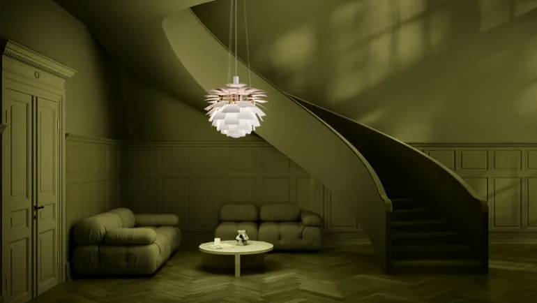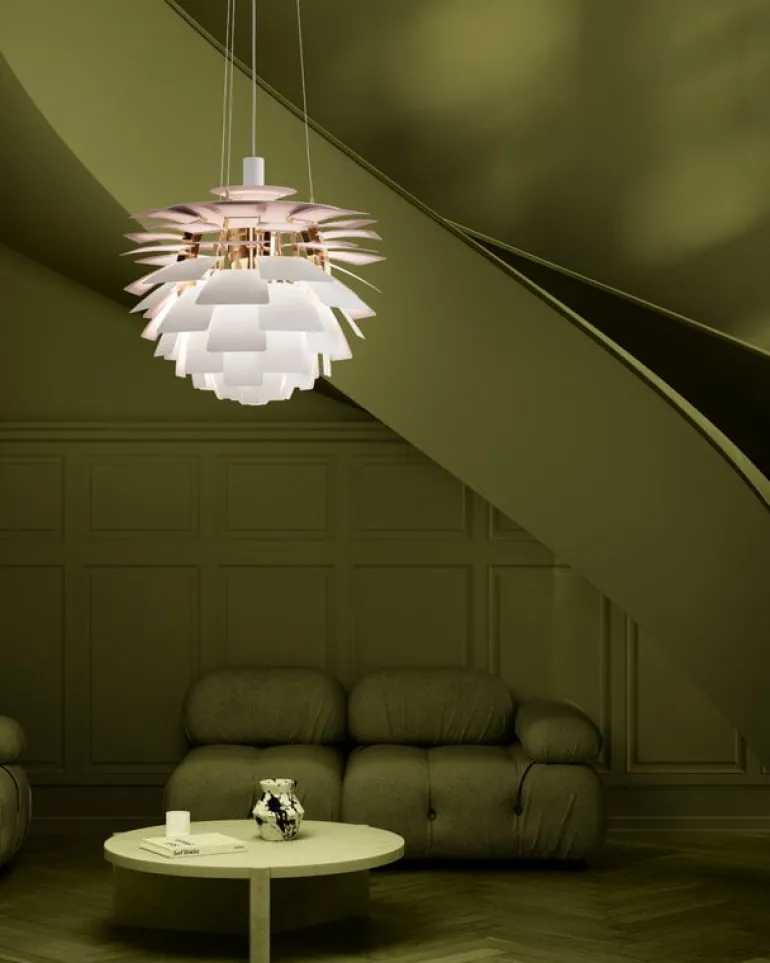 The PH Artichoke Anniversary Edition, launched in honor of Louis Poulsen’s 150th anniversary, is a unique collector’s item. The outer surface of the anniversary model is painted matte white and the inner surface is pale pink, paying homage to the original copper model, which also had a rose interior. Each luminaire is engraved with a unique identification number.